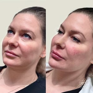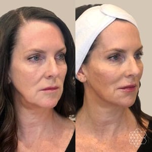 This is my version of a liquid face lift. I use different densities of small amounts of hyaluronic acid filler all over the face to turn back the clock and have you looking like the best version of you in your early 30’s without it being noticeable that filler has been injected. I often combine this with anti-wrinkle injections like Botox or Nuceiva to relax deep expression lines and lift the brow. This is the most impactful treatment for my patients in their 40’s with easy annual maintenance.